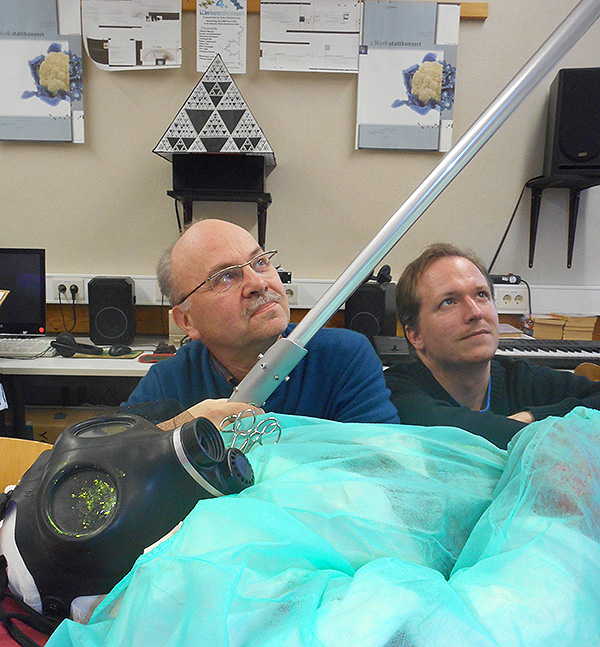 Musikalisches Tischlein-Deck-DichDie Musikwerkstatt der Kieler Gelehrtenschule präsentiert eine multimediale KlanginstallationIm März 2014 war das 9. Konzert der Musikwerkstatt „Op.tosys“ an der Kieler Gelehrtenschule eigentlich das letzte, weil ihr langjähriger Leiter Thomas Nagel in den Ruhestand ging. Doch die Idee, Musik mittels des Computerprogramms „Op.tosys“ (Operation to System) aus Zahlenfolgen zu generieren und multimedial zu präsentieren, lebt fort. Der „Unruheständler“ Nagel, sein Kollege Tim Bruhse sowie die jungen Mitarbeiter (inzwischen auch über die KGS hinaus) legen unter dem Motto „Tischmusik“ nach. In vier Klang-Objekt-Installationen spiegeln „begehbare Musik“ und Skulpturen „elementare menschliche Erfahrungen“: „Nonsense – Spaß und Witz“, „Spirit“, also das Transzendente, „Nightmare – Angst“ und „Beauty“ das „erhaben Schöne“. Im fünften Raum werden diese „komplett entkörperlicht“, indem man sich per Virtual-Reality-Headset durch das gerade mit allen so genannt realen Sinnen Erlebte bewegen kann. „Das Zentrum ist immer ein Tisch, wie eine Art Landschaft, rundherum der Klang“, so beschreibt Nagel das außergewöhnliche Konzept. Neben der Musik wird es auch Texte zu hören oder lesen geben, etwa im „Nonsense“-Raum Gedichte von Christian Morgenstern. Die unterschiedlichen audiovisuellen Quellen sind dabei zunächst unabhängig voneinander, und doch scheinen sie untereinander „Verabredungen“ zu treffen. Dieser seltsame Effekt von „Zusammenhangserlebnissen“, die im Zuhörer und gleichzeitig Zuschauer „als Ent-Sprache ent-stehen“, wie Nagel das mit Bezug auf phänomenologische Philosophie nennt, wird auf die Spitze eines multimedialen „Hör-Spiels“ getrieben. Mit Hilfe von Game-Processing-Software wie „Unity“ fließen die Medien und Eindrücke im fünften Raum schließlich vollends zusammen – „als Übergang zum Theater und (fast) alle Sinne umfassenden Gesamtkunstwerk“. Nagel und Bruhse verweisen ferner auf den „utopischen Aspekt dieser Haus-Musik“, die „eine neue Musikkultur jenseits des hergebrachten Konzepts Konzert“ entwickeln könne. ![]() Blicken mit ihrer „Tischmusik“ in die Zukunft der multimedialen Musik: Thomas Nagel (links) und Tim Bruhse. (Foto: jm)Allerlei produktions- und rezeptionsästhetische Theorie steht also im Hintergrund des „musikalischen Tischlein-Deck-Dich“. Doch wenn die beiden schon mal ein Auge und Ohr auf eine „scary“ Mumie aus dem „Nightmare“-Raum und ein Lichtschwert, das auf Bewegungen mit Klang- und Lichtspiel reagiert, gewähren, ist alle Theorie grau. Bunter wird’s ganz sicher im individuellen Erlebnis der „Tischmusik“, das man sich nicht entgehen lassen sollte. (jm) Freitag, 15. Dezember 2017, 18 Uhr in der KGS. |