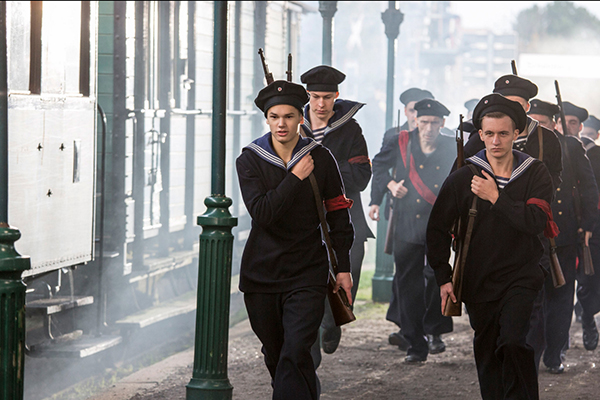 Identitätsstiftend für KielDas NDR/Arte-Doku-Drama „1918 – Aufstand der Matrosen“ feiert Welturaufführung beim CineMare-FestivalSchauen wir genau 100 Jahre zurück: Es ist Spätsommer in Kiel. Schon seit dem Frühling sind die Werftarbeiter in Hunger und daher Aufruhr. Jetzt schließen sich die Matrosen an, die nicht „in Ehren untergehen“ wollen, und daher „das Feuer aus den Kesseln“ kehren. Das NDR/Arte-Doku-Drama „1918 – Aufstand der Matrosen“ zeigt, wie die Matrosen sich gegen dieses sinnlose Sterben auflehnten. Es feiert Welturaufführung am 27. Oktober im Metro-Kino beim CineMare-Festival. ![]() Szene aus dem Film: Revolutionäre Matrosen auf dem Kieler Bahnhof. (Foto: Arte/NDR, Georges Pauly)Regisseur Jens Becker inszenierte das Doku-Drama mit Schauspielern wie Lucas Prisor, Henriette Confurius und Alexander Finkenwirth. Manches darin ist fiktional, manches aber auch dokumentarisch. Man mag dieser Mischform kritisch gegenüberstehen, doch NDR/Arte-Redakteurin Ulrike Dotzer ist sich sicher, dass genau diese Form das Revolutionsdrama „den Zuschauern nachvollziehbar“ macht. Auch Rolf Fischer, Sozialdemokrat und Vorsitzender der Gesellschaft für Kieler Stadtgeschichte, sieht das so. Die Kieler Revolte oder auch Revolution sei in ihrer Vielschichtigkeit dargestellt, ebenso ihre Protagonisten wie der Arbeiterführer Karl Artelt und der „Bluthund“ Gustav Noske, der von der Berliner SPD ausgesandt war, um in Kiel für Ordnung zu sorgen. ![]() Lucas Prisor spielt den Arbeiterführer Karl Artelt. (Foto: Arte/NDR, Georges Pauly)Die damaligen Auseinandersetzungen zwischen Radikalen und Gemäßigten scheinen noch heute nachzuwirken. Aber wie auch immer man die Kieler Revolte sehen mag, will der Film bewussst offen halten und dem Urteil des Zuschauers überlassen. So passt auch in den Film, dass Flottillenadmiral Kay-Achim Schönbach, neben Sahra Wagenknecht und Björn Engholm heutiger Kommentator, immer noch behauptet, „einer Meuterei“ könne man „bei allem Verständnis für die Matrosen“ nicht das Wort reden. ![]() Feuer aus den Kesseln – die Matrosen planen den Aufstand. (Foto: Arte/NDR, Georges Pauly)Doch haben sich die Zeiten und Bewertungen gewandelt, „auch bei der Bundeswehr“, weiß Rolf Fischer. Noch bei der Einweihung des Revoultionsdenkmals im Ratsdienergarten hätten 1982 CDU-Ratsmitglieder ihre Teilnahme verweigert. „Umso mehr muss man heutige Zuschauer mit modernen filmischen Mitteln erreichen“, sagt Ulrike Dotzer, selbst gebürtige Kielerin. Rolf Fischer ergänzt, es gebe in der Kieler Bevölkerung „eine Sehnsucht nach Identifikation mit diesem weltbewegenden Ereignis – jenseits von historischen Fachvorträgen“. Auch Dotzer meint, der Matrosenaufstand sei „identitätsstiftend für Kiel“. Ob der Film das leisten kann, bleibt abzuwarten. In der Diskussion ist der Kieler Aufstand, der die November-Revolution und damit einen demokratischen Wandel auslöste, in jedem Fall. Deshalb soll der Film, der drei Tage nach der Uraufführung bei Arte und hernach im NDR gezeigt wird, auch in Schulen vorgeführt werden. (jm) Welturaufführung am 27.10., 19 Uhr im Metro-Kino im Schloßhof. TV-Premiere am 30.10., 22 Uhr auf Arte und am 4.11., 20.15 Uhr in N3. Infos: www.1918aufstanddermatrosen.de. |
