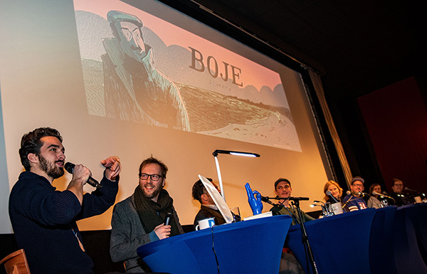 Lohnendes Kopfkino: Drehbuchpreis erstmals vergeben„Außen, Strand, Tag – Spätherbst an der See: Boje, 6, ein schmächtiger, verträumter Junge, und sein sanftmütiger, aber nordisch-schweigsamer Vater Holke, 28, machen einen Strandspaziergang“ – So beginnt die Geschichte „Boje“ von Andreas Cordes und Robert Köhler. Bisher existiert sie nur als Drehbuch für einen Film, und dennoch wurde sie bereits ausgezeichnet – beim 1. Drehbuchpreis Schleswig-Holstein. Der Verein Filmkultur Schleswig-Holstein hatte den Preis ausgelobt, um kreative Köpfe des Landes zu animieren, Geschichten zu schreiben. „Denn am Anfang und Ende zählt der Inhalt“, meinte Organisator Christian Mertens. 54 Drehbücher wurden eingereicht. Eine beachtliche Anzahl. Fünf davon wählte eine Vorjury für das Finale aus, bei dem die Drehbücher bei einer Lesung im Studio Filmtheater in Kiel nun erstmals öffentlich vorgestellt wurden. Ein schönes Format: Denn durch Sprecher wie Björn Beton von der Band Fettes Brot hatten alle Gäste ihr eigenes Kopfkino. ![]() Sprecher Björn Beton (Foto: Sven Bohde)Das Drehbuch von Cordes und Köhler wurde als erstes vorgelesen. Darin stellt der Junge namens Boje seinem Vater viele Fragen über das Leben. Der Vater findet zunächst keine Antworten darauf und schweigt. Als der Sohn eine Flaschenpost am Strand findet und so die Antwort auf seine Frage erhält, entsteht eine gewisse Magie, die der Geschichte einen besonderen Schwung gibt. Das dürften nicht nur die Gäste im Saal, sondern auch die Preisjury so empfunden haben. Und so urteilte sie: „Der Drehbuchpreis geht an einen Stoff, der nach Norden riecht.“ Vater und Sohn hätten eine gemeinsame Sprache gefunden. Auch der Publikumspreis ging an Cordes und Köhler. ![]() Drehbuchpreis-Gewinner Robert Köhler (links), Mitinitiator Christian Mertens und das sechsköpfige Leseteam präsentierten das Drehbuch „Boje“. (Foto: Sascha Witt)Die zwei Männer aus Berlin und Norderstedt waren begeistert. Genauso wie alle anderen Finalteilnehmer hatten sie genossen, ihr Drehbuch vorgelesen zu bekommen, und dankten den drei Frauen und drei Männern, die Buchstaben mittels ihrer Stimmen mit Emotionen anreicherten. Die zwei Autoren kündigten an, ihre Geschichte im März nächsten Jahres zu verfilmen. Am Strand von Hohwacht soll gedreht werden. Der fertige Film wird etwa neun Minuten lang sein. Ob auch die vier anderen Drehbücher verfilmt werden, bliebt offen. Einigen Autoren riet die Jury auch, an den Stoffen zu feilen. Dementsprechend erhielt Anissa Taibi eine lobende Erwähnung für ihr Werk „Später mit Hut“, mit dem Hinweis, dass es ein ungeschliffener Diamant sei. Der Wettbewerb machte Lust auf mehr, und so soll der Drehbuchpreis Schleswig-Holstein auch nächstes Jahr vergeben werden. (Sven Bohde, zuerst veröffentlicht vom Schleswig-Holsteinischen Zeitungsverlag – sh:z) |