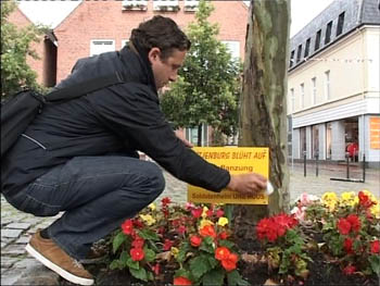 13. Filmfest Schleswig-Holstein AugenweideVom K(r)ampf anders zu sein „Rebellion auf dem Marktplatz“ (Heike Bettermann, Rainer Link, D 2008) „Das ist ja ein Troll, total unernsthaft“, hört man eine Zuschauerstimme nach dem Dokumentarfilm „Rebellion auf dem Marktplatz – Holsteiner Punk-Bewegung in der Gemarkung Lütjenburg“ durchaus kritisch über dessen Protagonisten Rocko Schamoni. Bei einer Rückschau auf die Punk-Bewegung (die eigentlich schon eine Post-Punk-Bewegung war) hätte sich wohl mancher mehr (historisch dokumentierenden) Ernst gewünscht. Was allerdings der porträtierten Jugendkultur Ende der 70er und Anfang der 80er Jahre im ostholsteinischen Provinznest Lütjenburg nicht gerecht würde, denn ihr Unernst ist konsequent. Woher auch den Ernst nehmen? Ernst kann man nur etwas nehmen, wenn man wüsste, was überhaupt. Doch für Rocko Schamoni aka Ronny Dangerblood war die Zeit als „Dorfpunk“ „die Zeit, wo ich ufer- und grenzenlos war, ein einziges Fragezeichen“. Das einzige, was klar schien: „Wir wollten anders sein, uns komplett selbst erfinden.“ Zu diesem anders Sein gehörte somit auch, das anders Sein anders zu machen – und damit Humor. Diesen hat sich Schamoni bis heute bewahrt, so dass er sich bei den Interviews das Lachen über die eigenen Statements kaum verkneifen kann. Er ist einer jener Typen, die er wie folgt beschreibt: „Sie tragen eine extreme Widerborstigkeit in sich, und die kommt ihnen im Leben auch nicht mehr abhanden.“ So ist auch von den Weggefährten Peter Marxen, ehemals Betreiber des Hamburger „Onkel Pö“, oder Co-Dorfpunk „Fliegevogel“ in den Interviews kaum ein „ernstes“ Wort zu hören. ![]() Fremdenführer durch ein vertrautes Land des anders Seins: Rocko Schamoni pflegt die Blumen auf dem Lütjenburger Marktplatz Für einen Dokumentarfilm ist es natürlich ein Problem, vom Porträtierten für dessen eigene Dialektik des Diskurses funktionalisiert zu werden. Eine eventuell für das Dokumentarische zu reklamierende Distanz zwischen Beobachter und Beobachteten geht hier völlig verloren. Sogar so weit, dass die beiden Regisseure Heike Bettermann und Rainer Link selbst die Ankündigung des Films auf der Augenweide-Bühne zu einer „unernsten“ Performance machen. Gleichwohl ist der Film, indem er sich auf dem schmalen Grat zum Doku-Fake bewegt, so nah an seinen Porträtierten, wie es eben geht, wenn es zu deren Selbstdarstellung gehört, die Selbstdarstellung stets selbst zu konterkarieren. Entstanden ist somit ein Dokumentarfilm, der den K(r)ampf ums anders Sein, die Dissidenz selbst um den Preis der Lächerlichkeit, gut darstellt, indem er sich ihm selbst ausliefert. Humoristisch treffender als mit Rocko Schamoni als „Reiseführer“ durch seine Heimatstadt Lütjenburg kann man deren provinziellen Muff kaum zeigen. Besser kann man auch nicht verstehen, wie aus dieser „Schlangengrube“ (Schamoni) der Fun-Punk norddeutscher Prägung geboren wurde. Vor diesem Hintergrund des – mutwilligen – völligen Distanzverlustes zwischen Beobachter und Beobachtetem erscheint es auch sinnvoll – wenn man denn im System der dadaistischen Avantgarde der „Dorfpunks“ von Sinn sprechen will –, lange Strecken des Films mit Ausschnitten des Theaterstücks „Dorfpunks – Blüten der Gewalt“, das seit 2008 u.a. mit Rocko Schamoni und seinen Kollegen von der Anarcho-Humor-Combo Studio Braun im Schauspielhaus Hamburg läuft, zu bestreiten. Auch hier sprechen die Porträtierten im doppelten Sinne des Wortes „für sich“. Dieses (anti-) dokumentarische Konzept bewahrt den Film auch vor einer Falle, in die solche Porträts vergangener Jugend- oder Pop-Kulturen regelmäßig tappen: nämlich das Ehemalige zu historisieren und somit oft auch zu verklären. Die eingangs zitierte Zuschauerresonanz beruht auf einer solchen Erwartungshaltung an einen Dokumentarfilm über Punk. Sie zu enttäuschen, könnte man dem Film fast als eigentliche Botschaft unterstellen. Zumindest Rocko Schamoni würde das gefallen, wenn er am Ende mit ernsthaftem Unernst resümiert: „Ihr hattet Recht, wir hatten Recht, und jetzt ist dieser Krieg vorbei.“ Nur so kann der Kampf ums anders Sein weitergehen ... (jm) „Rebellion auf dem Marktplatz – Holsteiner Punk-Bewegung in der Gemarkung Lütjenburg“, D 2008, 45 Min., Buch, Regie: Heike Bettermann, Rainer Link, Schnitt: Rainer Link. Gefördert von der Kulturellen Filmförderung S.-H. |