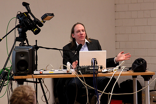 14. Filmfest Schleswig-Holstein - AugenweideDer Ton macht den FilmWerkstattgespräch „Der gute Ton“ mit Volker Zeigermann und Maria HemmlebVolker Zeigermann, an unzähligen Dokumentar-, Fernseh und Spielfilmen erprobter Tonmeister und Geschäftsführer eines Studios für Audio-Produktion, Postproduktion und Equipment-Verleih, brachte sein Verständnis von der Bedeutung professioneller Tonarbeit gleich zu Anfang seines zweistündigen Vortrages auf den Punkt: „Jeder Film mit seinem künstlerischen Ansatz erfordert einen eigenen Ansatz bei der Tonbearbeitung.“ ![]() Volker Zeigermann (Fotos: Lorenz Müller)Die Entwicklung insbesondere der digitalen Kameratechnik in den letzten Jahren verleitet zum Eindruck, die Aufzeichnung von Ton vereinfache sich in gleicher Weise wie die Aufzeichnung eines hoch aufgelösten digitalen Videobildes. Zwar hat zumindest jede Videokamera auch ein integriertes Mikrofon und die Möglichkeiten zum Anschluss von externen Mikrofonen (meist über 3,5mm-Klinke, Blitzschuh, seltener über XLR-Eingänge), doch für eine optimale Tonaufzeichnung ist nach wie vor separates Equipment die technische bessere und sicherere Lösung. Die Handhabung einer Tonausrüstung verlangt allerdings ebensoviel Sachkenntnis und Sorgfalt wie die der Filmausrüstung. Anhand von Tonbeispielen führte Zeigermann seine Zuhörer in das komplexe Feld auditiver Wahrnehmung ein. Durch die Komposition verschiedener Audio-Elemente lassen sich subtil Informationen über den (filmischen) Raum, Zeit und Situation vermitteln. Auch das Zeitgefühl de Zuhörers lässt sich durch die Gestaltung der Tonebene beeinflussen. Problematisch ist allerdings oft die Verständigung zwischen Regie und Sound Department über den Ton, die Ton-Atmosphäre ist schwierig zu definieren. Um sich für die spätere Gestaltung Optionen offen zu halten, „gilt hier mehr noch als bei der Kameraarbeit das Prinzip des Jagens und Sammelns“, so Zeigermann. Zeigermann unterscheidet drei Arten des Hörens: