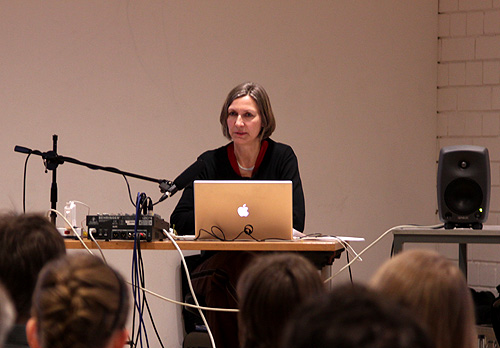 Damit wiederholt Hemmlieb die schon von Zeigermann hervorgehobene Bedeutung der Aufzeichnung einer brauchbaren, ausreichend langen Atmo. Es lohnt sich, so Hemmleb, sein eigenes Archiv an Atmos anzulegen. Kaufbare Atmo-Clips auf CD oder zum Download im Internet seien oft nicht brauchbar, schon weil sie meist zu kurz sind. Mit kleinen digitalen Audio-Rekordern lassen sich qualitativ hochwertige Aufnahmen erstellen, die eigentlich nie zu lang sein können und gerne auch mal eine halbe Stunde dauern dürfen. In diesem Zusammenhang wies Hemmleb auch auf die Notwendigkeit einer sauberen, „sprechenden“ Dateien-Benennung hin. Am besten finde sich der Ort und die Zeit der Aufzeichnung sowie der Name des Interviewpartners im Namen wieder. Eine Notwendigkeit der starken auditiven Nachbearbeitung unter Einsatz von Archivquellen resultiert nach den Erfahrungen von Hemmleb oft aus dem Mangel an qualitativen Original-Tonaufnahmen. Insbesondere auf längere Atmo-Mitschnitte angesprochen, reagieren Kameramänner gerne mal mit einem „Ich bin doch nicht beim Hörfunk“. In einer kurzen, lebhaften Diskussion standen die Ansprüche eines in seiner Kraft des Unverfälschten nicht zu unterschätzenden „Direct Cinema“ dem heute üblichen Verfahren einer Postproduktion á la „ZDF-History“, die selbst tonlosen Originalfilmen einen zeitgemäßen Sound verpasst, gegenüber. Maria Hemmleb wies in diesem Zusammenhang darauf hin, dass Sound Designer auch durchaus gezwungen sein können, mit „Klang-Klischees“ zu arbeiten, um die Hörgewohnheiten des Publikums nicht zum Nachteil des Films zu enttäuschen. Letztendlich obliegt es dem Filmemacher, sich für einen künstlerischen Ansatz zu entscheiden und diesen auch auf der Tonebene in enger Zusammenarbeit mit Tonmeistern, Sound Designern und Editoren umzusetzen. Wie diese Zusammenarbeit in der Praxis aussieht, konnten Volker Zeigermann und Maria Hemmleb einem zahlreich erschienen und interessierten Publikum anschaulich – oder wir sollten besser sagen: „anhörlich“ – nahe bringen. (dakro) |