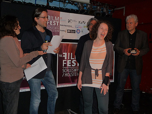 18. Filmfest Schleswig-Holstein 2014Zukunftsweisende SpurensuchenDie Preisträger des 18. Filmfests Schleswig-HolsteinDokumentarfilme sind weiterhin eine besondere Stärke im kleinen Filmland Schleswig-Holstein, wie nicht nur das Programm des 18. Filmfests Schleswig-Holstein zeigte, sondern auch die drei Preisträger samt einer lobenden Erwähnung. Alle vier Filme bewiesen, welche innovativen und kreativen Potentiale das Format Dokumentation bietet, inhaltlich und in der Auseinandersetzung mit der Form. Den mit 2.000 Euro dotierten und von der Kulturellen Filmförderung S.-H. gestifteten Hauptpreis für einen langen Dokumentarfilm gewann die israelische Regisseurin Yael Reuveny für „Schnee von Gestern – Farewell Herr Schwarz“. Die Jury, bestehend aus Alexander Thiele sowie den letztjährigen Preisträgern Carmen Blazejewski und Gerd Kroske, lobte, wie sich die Regisseurin „auf ihrer Recherche der eigenen Familiengeschichte selbst aussetzt und trotz tiefer Verwundungen unbestechlich um die Distanz, die allen Protagonisten gerecht wird, kämpft“. Der Film, der ab 10. April bundesweit in die Kinos kommt, verbindet die Spurensuche nach zwei Zweigen einer jüdischen Familie, die sich nach dem Holocaust gegenseitig für ausgelöscht hielten, mit deren – wenn auch nach wie vor vom Schmerz des Verlusts geprägten – „Wiedervereinigung“ und wird damit selbst zu einem verbindenden, versöhnenden Teil neu geknüpfter Familienbande. Das Dokument ist Baustein einer neuen Zukunft und weist damit über sich hinaus – für Yael Reuveny „das schönste Ergebnis meiner Recherche“, wie sie im Filmgespräch bekennt. ![]() Regisseurin Yael Reuveny im Filmgespräch mit Filmwerkstatt-Leiter Arne Sommer (Foto: Jessica Kordouni)Spuren der Vergangenheit muss man lesen, um die Zukunft gestalten zu können. So lobte die Jury an der Kurzdoku „Am Rande“ von Pablo Narezo, Maya Connors und Yasmin Angel, die den mit 1.000 Euro ex aequo geteilten und von der Pumpe gestifteten Preis für einen Kurzfilm gewann, „uns die Bilder eines Ereignisses, das die Medien nur unscharf, sparsam und nebenbei zur Kenntnis geben, in ihrer emotionalen Wucht“ ins Gedächtnis zu rufen: den Fall der Cap Anamur, deren Kapitän Schmidt 2004 im Mittelmeer schiffbrüchige Flüchtlinge aus dem Sudan rettete und dafür von den italienischen Behörden kriminalisiert wurde. Ein Beispiel für Zivilcourage gegen eine unmenschliche Politik der EU, die sich an ihren Grenzen gegen Flüchtlinge abzuschotten versucht, für das eine filmische Gegenöffentlichkeit geschaffen und der Dokumentarfilm sich erneut seiner politisch eingreifenden Funktion bewusst wird. Waren es bei diesen Preisträgern vor allem die inhaltlichen Aspekte, welche die Jury überzeugten, ist es beim zweiten Kurzfilmpreisträger die formale Gestaltung. Die lettische Filmemacherin Astra Zoldnere porträtiert in „Treasures of the Sea“ das Baltikum in seiner eng mit dem Rohstoff Fisch verbundenen Kultur ebenso allegorisch wie poetisch und „handwerklich verblüffend mit sicherem Gespür für Kadrierungen, Rhythmus und Einstellungslängen“, so die Laudatio. ![]() Astra Zolderne freut sich über ihren Preis für „Treasures of the Sea“ (Foto: Helmut Schulzeck)Ebenfalls für die poetische formale Gestaltung erhielt Urte Alfs’ Videoinstallation „Osmose“ eine lobende Erwähnung. Vorgefundenes Material aus Lehr- und Wissenschaftsfilmen verwebt die Berliner Künstlerin zu einem experimentellen Dokumentarfilm, der Diffusion und Osmose als zentrale Bewegungsgründe allen Lebendigens zeigt und dabei selbst zu einer Art Osmose der Bilder führt. (jm) Die Preise und Jury-Begründungen im einzelnenFür einen langen Dokumentarfilm, dotiert mit 2.000 Euro, gewinnt: „Schnee von Gestern – Farewell Herr Schwarz“ von Yael Reuveny Begründung: Konzentriert auf eine einzige Familienfotografie begibt sich die Regisseurin auf eine Reise in die Vergangenheit, Gegenwart und Zukunft ihrer Familie, die im Holocaust zerstört wurde. Sie setzt sich auf ihrer Recherche der eigenen Familiengeschichte selbst aus und kämpft trotz tiefer Verwundungen unbestechlich um die Distanz, die allen Protagonisten gerecht wird. Sie fügt zusammen und weist ins Offene. Für einen Kurzfilm, dotiert mit 1.000 Euro, gewinnt: „Am Rande“ von Pablo Narezo, Maya Connors, Yasmin Angel Begründung: Dem Film „Am Rande“ gelingt es mit einfachen filmischen Mitteln, uns die Bilder eines Ereignisses, das die Medien nur unscharf, sparsam und nebenbei zur Kenntnis geben, in ihrer emotionalen Wucht zu zeigen. Für einen Kurzfilm, dotiert mit 1.000 Euro, gewinnt: „Treasures of the Sea“ von Astra Zoldnere Begründung: Gefangen, verarbeitet und verspeist wird Fisch. Ein Lebensmittel in einem handwerklich verblüffenden Film durch seine ästhetischen Entscheidungen: mit sicherem Gespür für Kadrierungen, Rhythmus und Einstellungslängen erzählt uns die Regisseurin seinen Weg. Eine lobende Erwähnung erhält: „Osmose“ von Urte Alfs Begründung: Bilder und Töne kommen zusammen, die ihren Ursprung nicht auf Anhieb preisgeben. Rhythmus und Montage erschaffen einen neuen Kontext, Osmose in ihrer Vitalität wird sichtbar. |