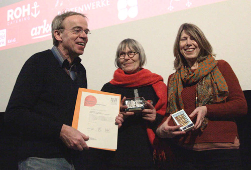 20. Filmfest Schleswig-Holstein 2016Auf dem hiesigen und anderen PlanetenBeim 20. Filmfest SH bewiesen die Jurys in ihren Urteilen Nah- und WeitblickMit Spannung wurden bei der Preisverleihung des 20. Filmfests SH die Urteile der beiden Jurys für die Hauptpreise (je 2.000 Euro, gestiftet von der Pumpe und der Kulturellen Filmförderung SH) und für den Nachwuchspreis (1.000 Euro, bereits zum zweiten Mal gestiftet von der Tatort-Produktionsfirma Nordfilm) erwartet. Nach drei Tagen Filmfest mit 42 Filmen und drei Installationen schien wie beim „Oscar“ alles offen. Schon der Eröffnungsfilm „Viacrucis Migrante“ von Hauke Lorenz blickte weit über den Tellerrand des kleinen schleswig-holsteinischen Film- und Förderungsplaneten hinaus: Indem er die Schicksale von Flüchtlingen, die sich aus Zentralamerika auf der Flucht vor mafiösen Banden gen Norden ins „gelobte Land“ USA aufmachen, mit ganz naher Kamera protokollierte. Nicht nur wegen der Parallelität zur aktuellen europäischen „Flüchtlingskrise“, munkelten manche schon am ersten Abend: „Preisverdächtig!“ ![]() Preisträger, Jury und Veranstalter bei der Preisverleihung (v.l.n.r. vorne: Dennis Stormer (lobende Erwähnung für „The Quick Guide ...“) Uwe H. Martin, Frauke Huber (beide Preisträger für „LandRush“), Viola Rusche, Hauke Harder (beide Preisträger für „A Shape of Time“) – hinten: Tobias Hollmann („The Quick Guide ...“, Schnitt), Kerstin Ramcke (Nordfilm), Arne Sommer (Leiter des Filmfests und der Filmwerkstatt Kiel), Thomas Plöger (Jury Nachwuchspreis), Karsten Wiesel, Susanna Salonen, Urte Alfs (alle Jury), Christoph Zickler, Jessica Dahlke (beide Vorstand Kulturelle Filmförderung S.-H.), Adalbert Schwede (Geschäftsführer Pumpe) – Foto: Berit Mölleken)Doch da war noch mehr vom hiesigen und fremden Planeten zu berichten. Die multimediale und damit dokumentarisches Neuland eröffnende Installation „LandRush“ von Frauke Huber und Uwe H. Martin zeigte ein ähnliches globales Problem: Landwirtschaft zwischen Nachhaltigkeit im Umgang mit den begrenzten Ressourcen und globalisierten Anforderungen. Sie gewann dafür einen der von der Pumpe ausgelobten Preise. Ein weiterer Preis von der Pumpe ging an den Animationskurzfilm „Planet Willi“, worin Sören Wendt uns die fremde Welt eines so genannt „behinderten“ Kindes nahebringt. „Behinderung“ ist keine solche, nur eine andere Wahrnehmung eines „von einem anderen Planeten“. Nicht minder auf „andere Planeten“ gepolt war die Jury bei den beiden von der Kulturellen Filmförderung SH ausgelobten (jeweils mit 1.000 Euro dotiert) Preisen. „Utbüxen kann keeneen – Weglaufen kann keiner“, hörten Gisela Tuchtenhagen und Margot Neuber-Maric immer wieder von ihren Protagonisten, wenn sie in ihrer Doku der sehr speziellen Dithmarscher „Sterbekultur“ auf den Grund gingen. Nicht nur plattdeutsch kreist hier ein Planet, auch in der Begleitung Gestorbener und um sie Trauernder. Weiter weg und doch ganz nah ran gehen Viola Rusche und Hauke Harder mit ihrem inzwischen dritten Porträt eines Komponisten Neuer Musik „A Shape of Time“. Der japanische Komponist Jo Kondo, geprägt von der Avantgarde des Westens wie John Cage, der sich wiederum vom fernen Osten inspirieren ließ, steht hier im Mittelpunkt, eingefangen in Bildern a la Ozu und ganz nah, wenn er über das „Zen“ aller Kunst nachdenkt. ![]() Helmut Schulzeck übergibt einen der Hauptpreise an Gisela Tuchtenhagen und Margot Neuber-Maric (Foto: Lorenz Müller)Und wie positioniert sich der Nachwuchs zwischen den Planeten? Sebastian Husak spürt dem „Rhythmus“ des Lebens nach, den junge Leute noch nicht haben, weil sie ihn erst erfühlen müssen. Sein Film zeichnet in Schwarz-Weiß eine Begegnung nach, die nicht folgenlos bleibt, auch wenn die beiden auf jeweils anderen Planeten und Wegen sind – Nachwuchspreis. Und lobende Erwähnung für etwas ganz Verrücktes – „The Quick Guide how to get famous in Five Minutes“: Dennis Stormer und Rike Hoppe zeigen darin in krassen Bild-Wirbeln, wie man berühmt wird: Durch Filmbilder, die uns vom hiesigen zu anderen Planeten hin verstören. (jm) Weitere Infos zu den Filmen: www.filmfest-sh.de |
