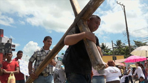 20. Filmfest Schleswig-Holstein 2016Martyrium Migration„Viacrucis Migrante – Kreuzweg der Migrant_innen“ (Hauke Lorenz, D 2015)„Mexiko am Mittelmeer“ titelt die Pressemitteilung zu Hauke Lorenz’ Dokumentarfilm-Debüt „Viacrucis Migrante – Kreuzweg der Migrant_innen“. Solche Titelei verwundert zunächst, doch schon in den ersten Bildern wird die Parallele deutlich: Das Martyrium der Migration ist ein globales Phänomen, an der Südgrenze Mexikos ebenso wie an solcher der EU. Ganz aktuell sind die TV-Bilder vom griechisch-mazedonischen Grenzdorf Idomeni, wo Flüchtlinge aus Syrien und Afghanistan unter menschenunwürdigen Bedingungen hausen müssen, dennoch hoffen, nach Norden vordringen zu können. Ins „gelobte Land“, das sie mit allen, auch zunehmend gewalttätigen Mitteln abzuwehren versucht. Die Bilder von „Boat-People“ vor Lampedusa sind dagegen fast schon wieder verblasst, denn „die medialen Bilder von Flüchtlingen stumpfen uns ab“, so Hauke Lorenz. ![]() Sprung aus der Heimat in die Fremde – Flüchtling in „Viacrucis Migrante“ (Fotos: Hauke Lorenz)Er hat sich indes nicht abstumpfen lassen, sondern geht mit seinem Film mitten unter die Menschen, die sich aus Guatemala, Honduras oder El Salvador auf den beschwerlichen, mindestens 1.700 Kilometer langen „Kreuzweg“ ins „gelobte Land“ USA machen, aber oft schon an der Südgrenze des Transitlandes Mexiko scheitern. Ihre Fluchtgründe sind so vielfältig wie die von Syrern, Afghanen und Afrikanern, die sich unter Lebensgefahr nach Norden aufmachen, um dem noch lebensgefährlicheren Verbleib im Heimatland zu entfliehen: Instabile politische Verhältnisse, die dazu führen, dass mafiöse Banden von Bürgerkriegsgewinnlern die Bevölkerung bedrohen, malträtieren und versklaven. Solchem Martyrium kann mensch nur entrinnen, wenn er oder sie das Martyrium der Migration auf sich nimmt – um in ein erneutes zu gelangen: Schlepper schröpfen die Flüchtlinge, entführen sie, um Lösegeld von den zurückgebliebenen Familien zu erpressen, setzen sie sexualisierter Gewalt aus, peinigen sie wie die Peiniger, vor denen die Menschen fliehen. Und dann sind da noch die mexikanischen Polizeigewalten, die ihnen nicht minder ans Leben, sie abschieben wollen, zurück in ihr Martyrium in den Heimatländern. Doch die hoffnungslos Hoffnungsvollen machen sich immer wieder erneut auf den Weg – es bleibt ihnen nichts anderes übrig. „Transitmigration“ nennt die ethnologische Forschung das Phänomen relativ gefühllos, Hauke Lorenz hat darüber seine Magisterarbeit geschrieben. Dazu hat er Feldforschungen in Süd-Mexiko angestellt, aber das genügte ihm nicht. Ihn bewegte das Problem nicht nur wissenschaftlich, sondern auch menschlich. Also machte er sich als „Rucksackfilmemacher“ plus Kameramann Juan Carlos Martinez Christancho auf ins mexikanische Grenzstädtchen Tenosique. Dort gibt es das von der katholischen Kirche (Franziskaner) betriebene Auffanglager „La 72“, wo „durchreisende“ Flüchtlinge aus Mittelamerika für ein paar Tage und manchmal auch Wochen Schutz, Herberge und medizinische Betreuung finden. Asyl vor den Zugriffen der mexikanischen Migrationspolizei, die im Bunde mit den und als Söldner der USA die Flüchtlinge, bevor sie die USA erreichen können, von deren Grenzen fern halten sollen – weitere aktuelle Parallele zu Europa und seiner so genannten „Flüchtlingskrise“. Im Lager „La 72“ erzählten dem Filmemacher, der seinen Film als logische Fortsetzung seiner ethnologischen Feldforschungen zur „Transitmigration“ begreift, Verzweifelte ihre Fluchtgeschichten. Lorenz (der zuweilen selbst die Kamera führte) und sein Kameramann kommen dabei unglaublich nahe an die Schicksale heran. Sie dokumentieren, lassen den Betrachter dabei aber auch mitfühlen. Eine Doku-Ästhetik, die TV-Journalisten oft vermissen lassen, weil sie sich aus einem vermeintlichen journalistischen Kodex des „unvoreingenommenen Betrachtens“ nicht berühren lassen. ![]() (v.l.n.r.) Alberto, Noé und José in der (halbwegs) sicheren HerbergeSo ergreift Lorenz Partei für die martyrisch Migrierenden, ohne dass er sich mit ihnen so gemein macht, dass es platte Parteinahme wäre. Vielmehr beobachtet er und verhehlt doch nicht das Mitgefühl. Etwa für die Transsexuelle, die in ihrer Heimat für ihren Lebensentwurf an Leib und Leben bedroht wurde. Ein wunderbarer Moment, wenn ihr Bruder sie_ihn als „meine liebe Schwester“ bezeichnet. Wie die Schrifttafeln am Ende verzeichnen, hat sich eben dieses Geschwisterpaar auf der Flucht verloren. Der eine sprang auf den Güterzug auf, der einmal die Woche durch Tenosique gen Norden fährt, die andere nicht. A propos Schrifttafeln über die Fluchtverläufe nach dem Film: Hätte man sich die nicht am Anfang, wo unvermittelt eine Prozession von Kreuzträgern am Karfreitag durch Tenosique zieht, um für die Flüchtlinge und gegen die Repression der mexikanischen Polizei zu demonstrieren, zur Erklärung des „Settings“ gewünscht? Nein! Dass Hauke Lorenz uns Betrachter zu Beginn mitten da hinein wirft, zeugt von einer Regie, die uns von Anfang an mitfühlen und -leiden lässt, uns mitten in eine Situation der Verzweiflung und Verlorenheit wirft, die Jesus von Nazareth auf seinem Kreuzweg empfunden haben mag – als Flüchtling aus ihm feindlicher Fremde ins „gelobte Land“. (jm) ![]() Der Kreuzweg als Hoffnung – Migrant Carlos trägt das selbst gezimmerte Kreuz„Viacrucis Migrante – Kreuzweg der Migrant_innen“, D 2015, 60 Min. (Spanisch mit dt. UT); Buch/Regie: Hauke Lorenz; Kamera: Juan Carlos Martinez Christancho, Hauke Lorenz; Produktion: Hauke Lorenz, TIDE – Hamburger Community-Sender und Ausbildungskanal; Förderung: Brot für die Welt, Missionszentrale der Franziskaner, MISEREOR, Filmförderung Hamburg Schleswig-Holstein (FFHSH), Crowdfunding-Kampagne. Infos zum Film und Trailer: www.viacrucismigrante.com. Kino-Termine: Filmfest Schleswig-Holstein 